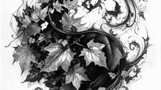 CanvaのAIで生み出した、和風とアートを融合させた紅葉のモノクロデザインがSUZURIに登場!秋にぴったりのロングTシャツやパーカーなど、オリジナルグッズで和の美しさを日常に。