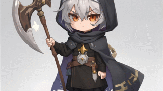 CanvaのAIで制作した、フードをかぶり斧を持つチビキャラ戦士デザインがSUZURIに登場!アクリルキーホルダーやパーカーなど、可愛くてクールなオリジナルグッズで冒険心を取り入れよう。